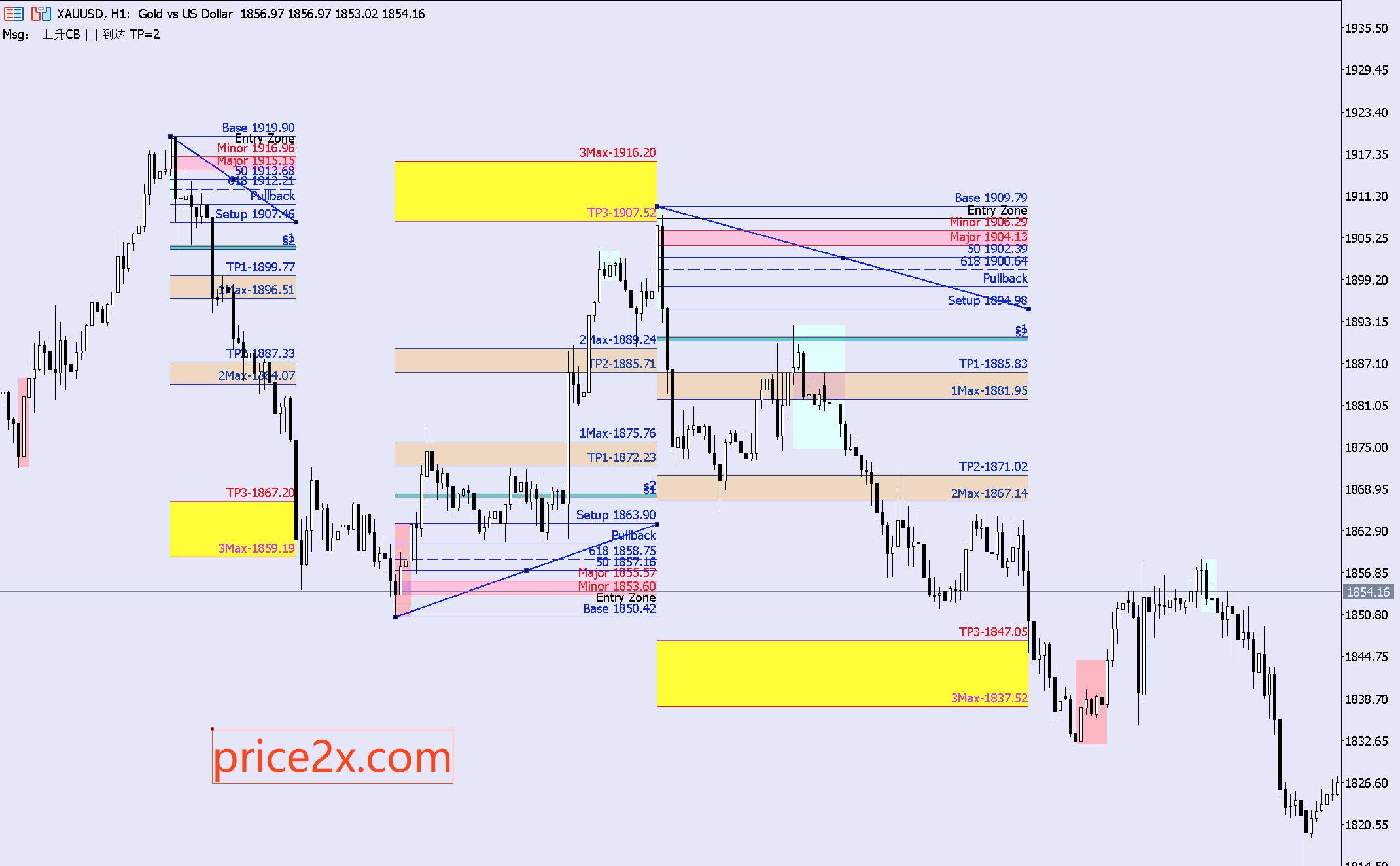 这款指标可以标记信号突破的位置,高亮标记信号的止盈区域,在tp3,tp2的位置找反转信号。