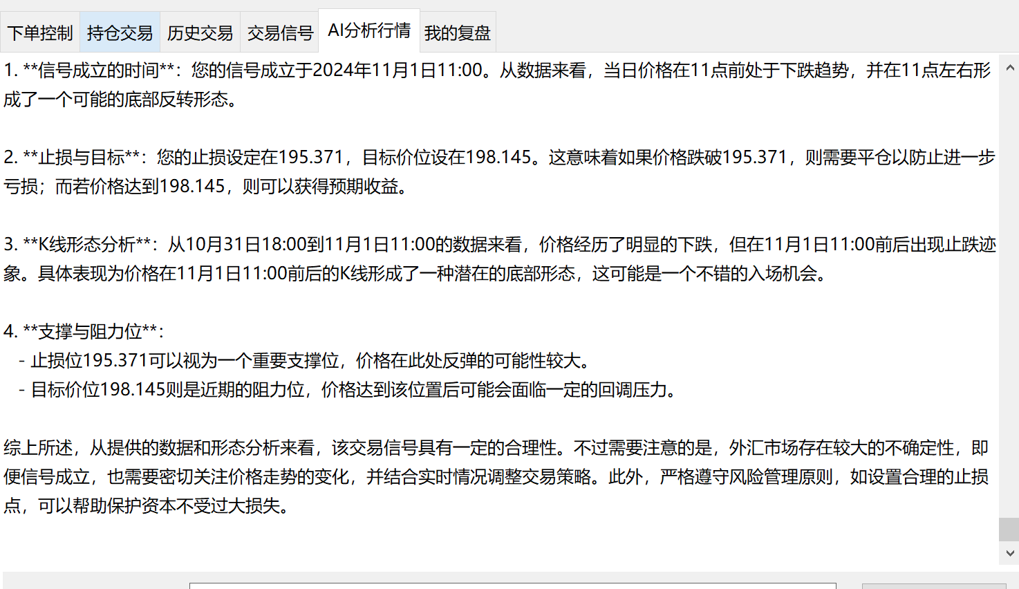 - AI不仅可以帮助分析市场趋势,还能评估交易信号的质量,从而提高交易决策的准确性。